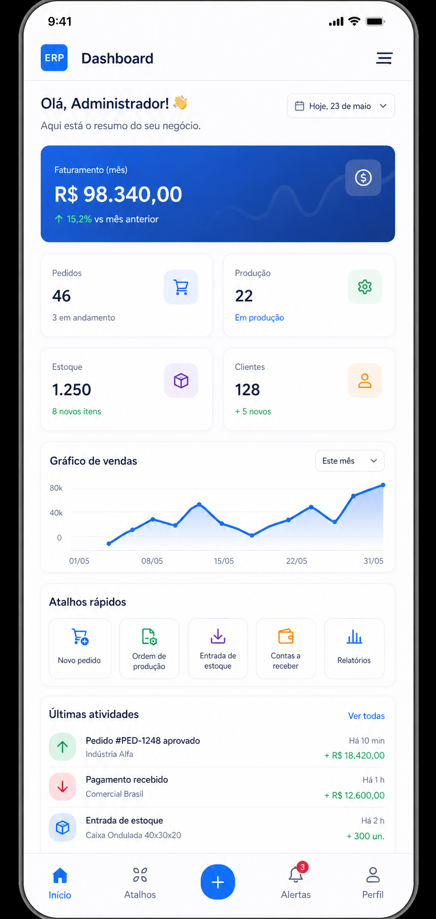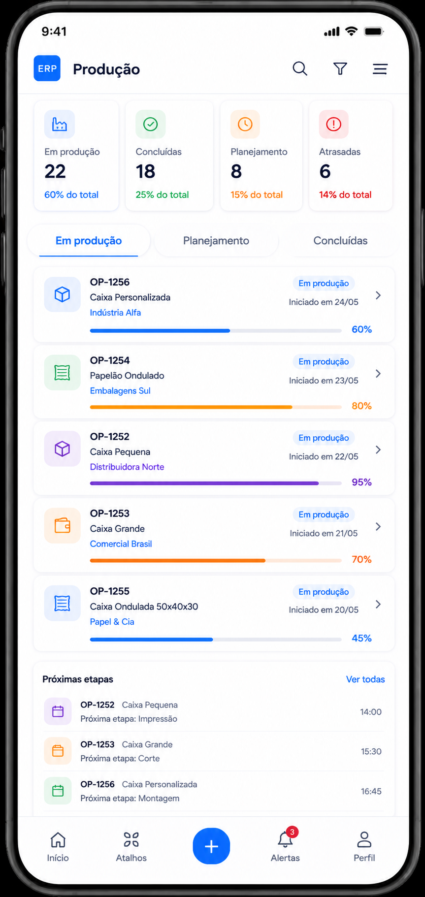 Ideal para operação, produção, vendas externas e acompanhamento em campo.