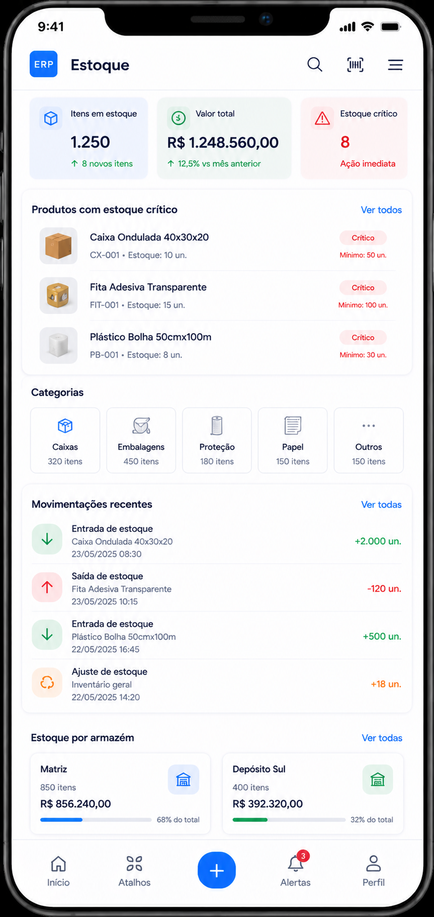 Depois · ERP moderno e integrado