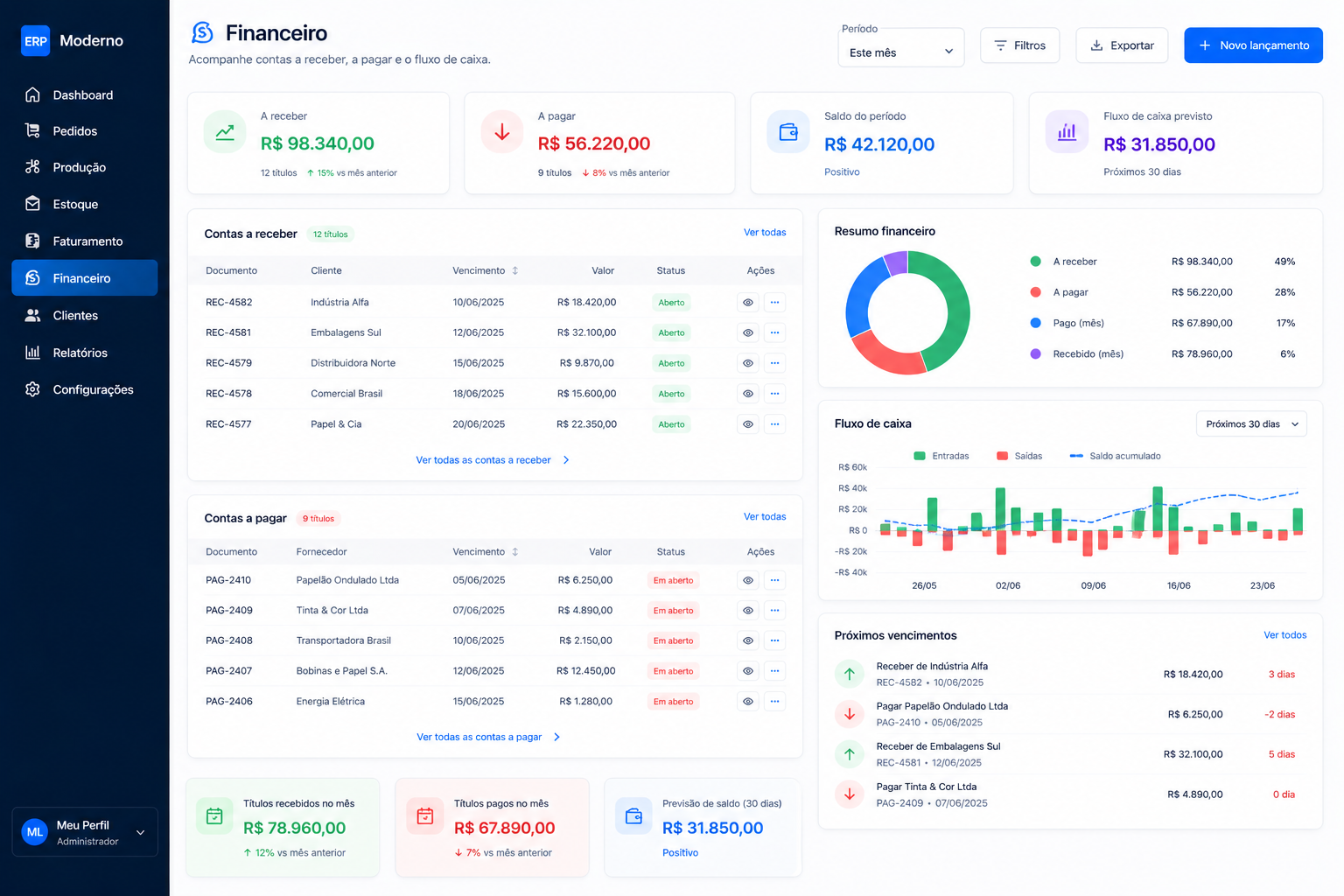 | 4582 | Indústria Alfa | Produção | 23/04 | 18.420 |