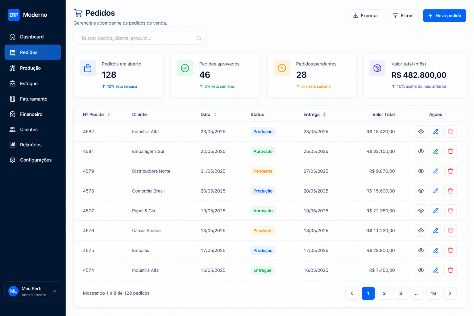 | 4579 | Distribuidora Norte | Pendente | 27/04 | 9.870 |
